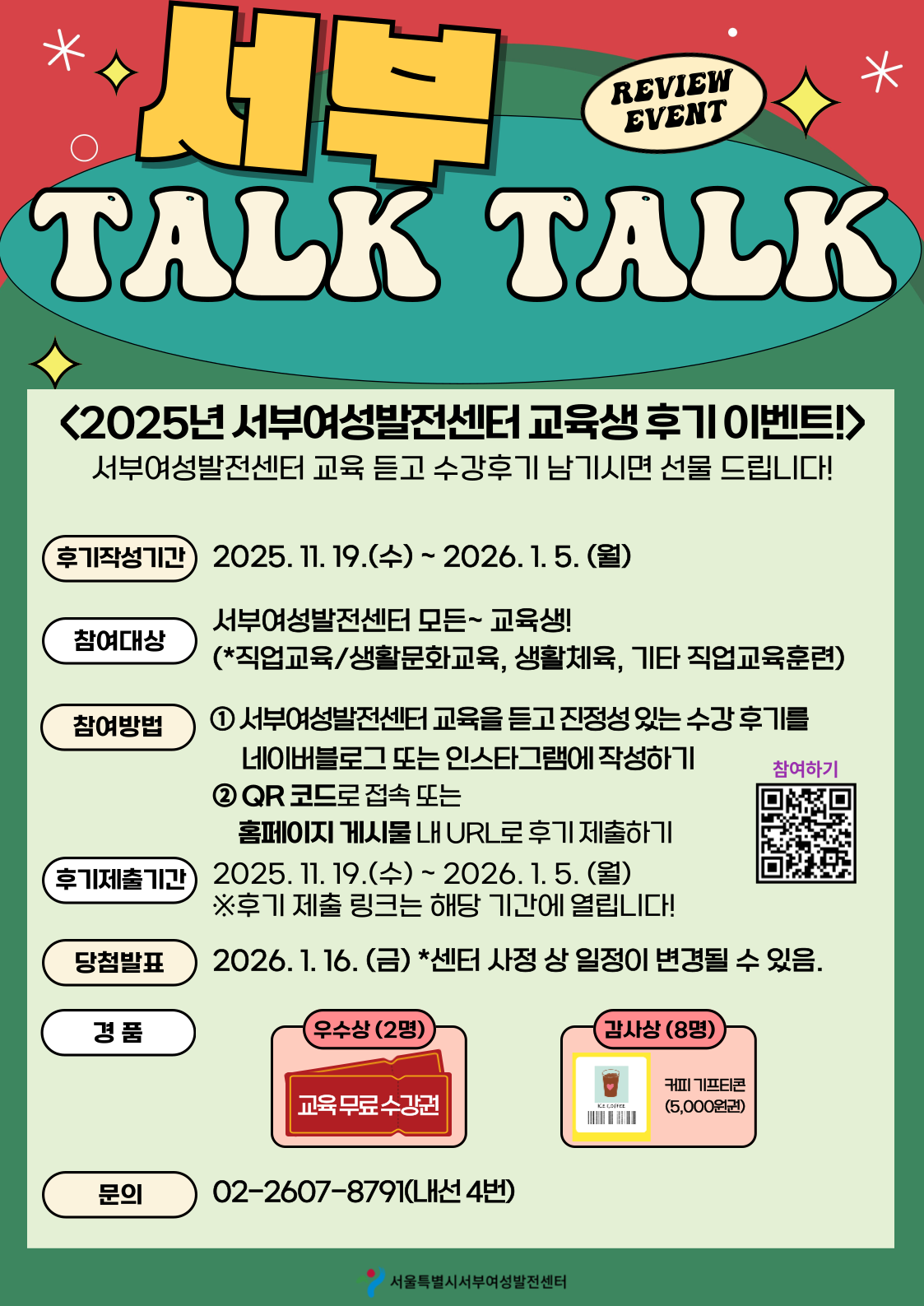 [이벤트] 2025년 4분기 교육생 후기 이벤트! <서부 Talk Talk!> 참여 안내