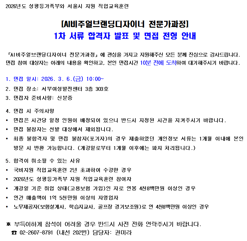 AI비주얼브랜딩디자이너 전문가과정 1차 서류합격자 발표 및 면접 공지